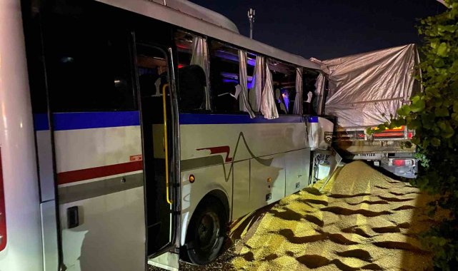 Kaza, İzmir-Turgutlu karayolu Çepnidere Kavşağı tuğla fabrikası önünde meydana geldi. İzmir yönünden Turgutlu istikametine seyir halindeki Nurettin K. idaresindeki 45 J 6406 plakalı servis aracı, yolun sağ tarafında iddiaya göre park halinde duran buğday yüklü tıra arkadan çarptı. Kazada servis sürücüsü Nurettin K. ve araçta bulunan çok sayıda işçi yaralanırken, haber verilmesi üzerine olay yerine itfaiye, polis ve çok sayıda sağlık ekibi sevk edildi. Kaza sonrası servis aracında sıkışan işçiler itfaiye ekipleri tarafından araçtan çıkarılırken, olay yerinde bekleyen ambulanslarla Turgutlu'daki hastanelere götürüldü. Kazayla ilgili inceleme başlatıldı.