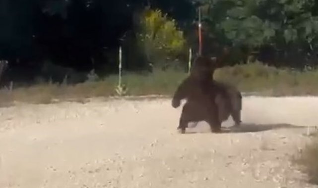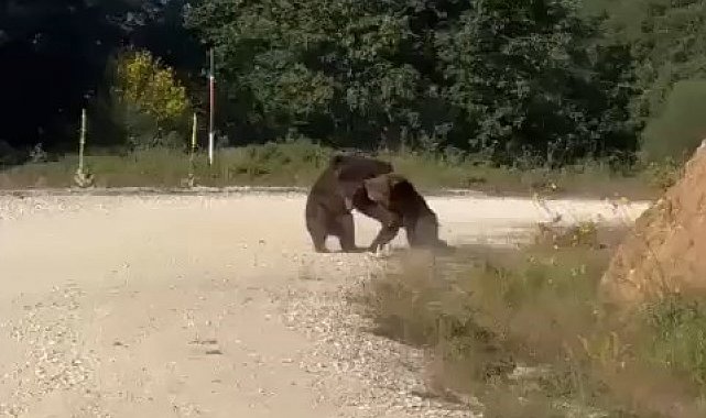 Bursa'da vatandaşlar tarafından kayda alınan görüntüler, izleyenlerin içini ürpertti. Bursa'nın Gemlik ilçesi Haydariye Mahallesinde yola inen 2 ayı, yolun ortasında güreşe tutuştu. Kendilerinin görüntüsünün alındığın fark eden ayılar, yolun kenarına doğru kaçmaya başladı. Ancak gittikleri yer ise ormanlık alan değil, uçurum olduğunu söyleyen vatandaş, ayıların aşağı yuvarlandığını söyledi.