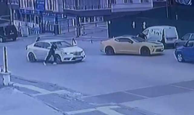 Olay, dün öğle saatlerinde Mamak'ta meydana geldi. İddialara göre, Tuncay Boğa (19), içinde ailesinin de bulunduğu aracıyla ilerlediği sırada, önündeki sürücünün tehlikeli hareketleri nedeniyle kornaya bastı. Korna sesine tepki gösteren sürücü ise küfrettiği Boğa'yı takip ederek sıkıştırdı sonra da aracına çarptı. O sırada önü kesilen genç adam otomobilden inen 2'si kadın 1'i erkek olmak üzere 3 kişinin saldırısına uğradı. Kendisine silah gösterildiğini iddia eden Boğa'nın aracına da saldırganlarca zarar verildi. Uğradığı saldırı sonrası Boğa, polise giderek saldırganlardan şikayetçi oldu. Saldırı anı ise güvenlik kamerasına yansıdı.