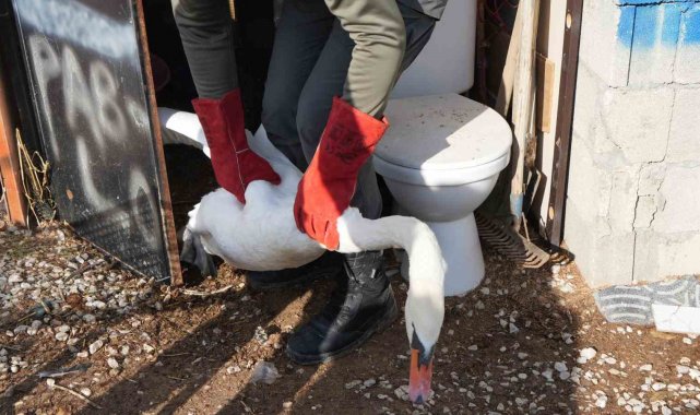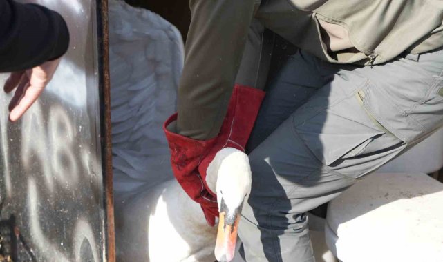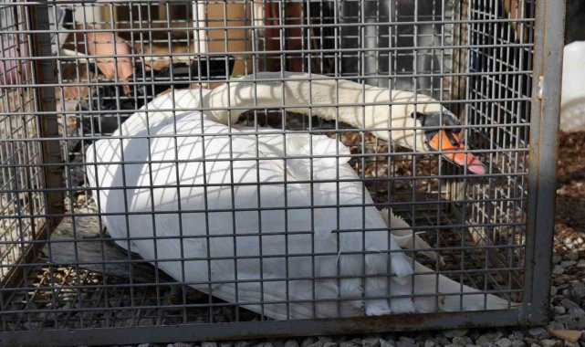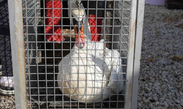 Ankara'nın Elmadağ ilçesinde evin bahçesine düşen kuğu, bir gün boyunca ev sahibinin misafiri oldu.