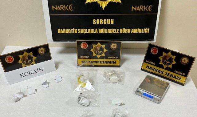 Edinilen bilgiye göre Sorgun ilçesinde zanlı Y.İ.'de yapılan aramada 4 parça halinde 3,19 gr. kokain, 8 parça halinde 24,37 gr. metamfetamin ve 1 hassas terazi ele geçirildi. Şüpheli, çıkarıldığı mahkemece tutuklandı.