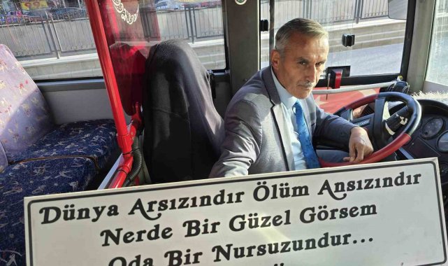 Yozgat Özel Halk Otobüsü şoförü Mehmet Uzun, nezaketli davranışları, manileri ve otobüs yazılarıyla görenlerin beğenisini topluyor.