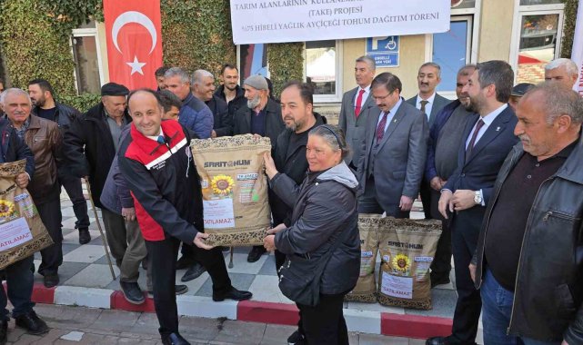 Tarım ve Orman Müdürlüğü'nde Tarım Alanlarının Kullanımının Etkinleştirilmesi (TAKE) projesi kapsamında üreticilere yüzde 75 hibeli yağlık ayçiçeği tohumu dağıtıldı.