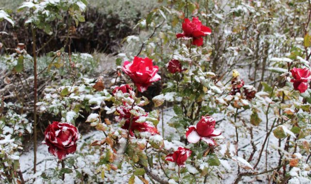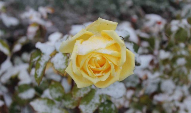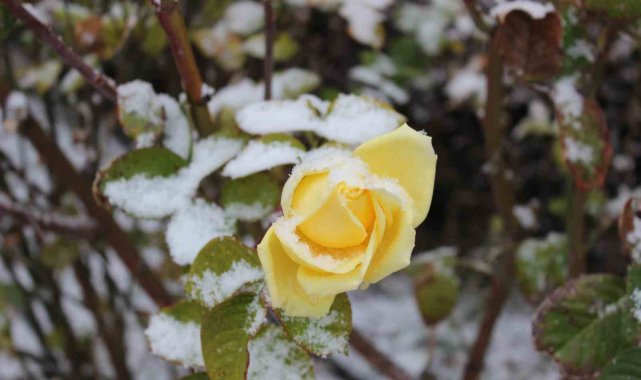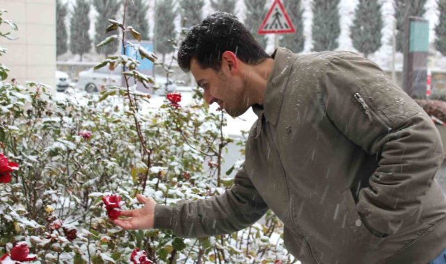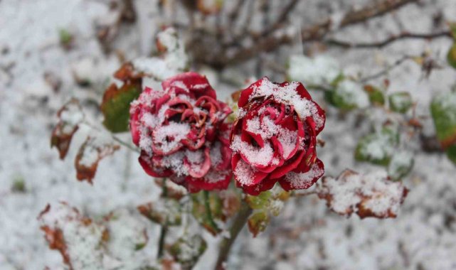 Kent merkezinde sabah saatlerinde başlayan ve aralıklarla etkisini sürdüren kar yağışı, açan çiçekleri beyaz örtüyle kapladı. Kar yağışıyla birlikte açmış olan güllerin kar altında kalması vatandaşların ilgisini çekerken, ortaya kartpostallık görüntüler çıktı. Doğayla iç içe oluşan bu manzaralar fotoğraf tutkunlarının da ilgisini çekti.