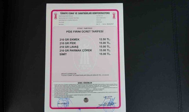 Yozgat'ta yeni ücret tarifesine göre 210 gram ekmeğin fiyatı 10 TL'den 12.50 TL'ye yükseldi. 210 gram pide, 210 gram lavaş, 210 gram parmak çörek fiyatları da 15 liradan satışa sunuldu.
