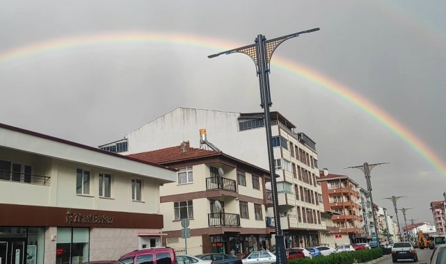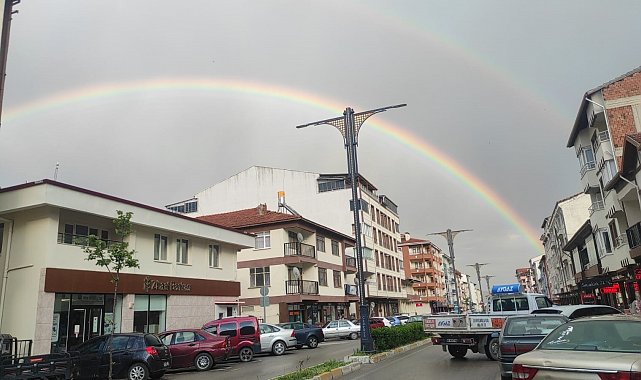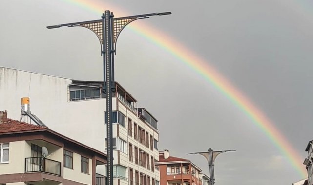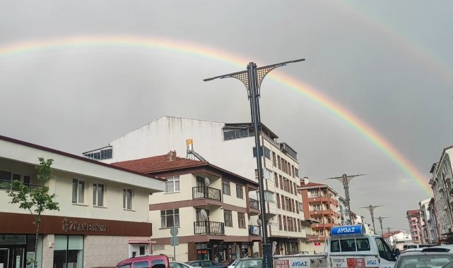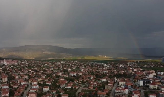 Yozgat'ta dün gün boyu etkili olan güneşli hava, akşam saatlerinde yerini yağmura bıraktı. Yağmurun ardından güneşin tekrar yüzünü göstermesiyle birlikte gökyüzünde beliren gökkuşağı, eşsiz görüntüler oluşturdu. Çekerek ilçesinde pek çok noktadan net bir şekilde görülebilen gökkuşağı oldukça ilgi gördü. Doğanın bu nadide gösterisi, kısa süre de olsa gökyüzünü renk cümbüşüne çevirdi.