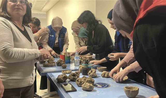 Serginin gezilmesinin ardından, seramik çalışmalarını yapan öğrenciler, katılımcılara kil ile yapılabilecek çalışmalar hakkında uygulamalı bilgi verdi.