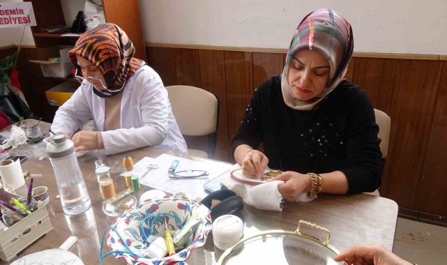 El Sanatları Öğretmeni Zeynep Kızılay ise, "El sanatları, makine nakışı, lefkare, Türk nakışları alanında çalışıyorum. Şu an hanımlarla cam tepsiler, masa örtüleri yapıyoruz. Ayrıca burada yaptıkları ürünleri satıp ev ekonomisine katkı sağlayabilirler. 20-25 civarı kursiyerimiz var. Talepler güzel. Sabah 09.00'dan öğleden sonra 16.00'ya kadar kursumuz açık" şeklinde konuştu.