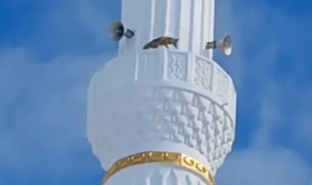 Yozgat'ta minareye çıkan tilki hayrete düşürdü