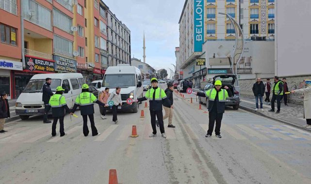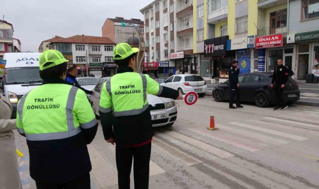 Yozgat'ta öğrenciler trafiğe yön verdi