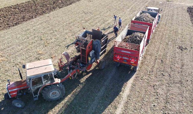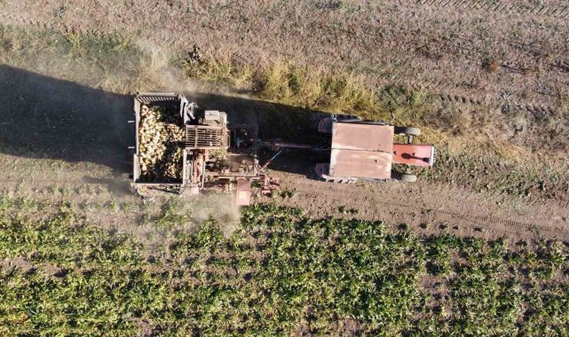 Türkiye genelinde şeker pancarı hasadında sona yaklaşılırken, çiftçiler aylar süren emeklerinin karşılığını almaya başladı. Çiftçilerin söküm mesaisi dron ile görüntülendi.