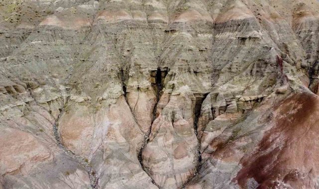 Kar, yağmur ve rüzgarın etkisiyle oluşan doğal aşınmalar, Yozgat'ta ilgi çekici görüntüler ortaya çıkardı. Doğanın uzun yıllar boyunca şekillendirdiği toprak yapısı, ortaya çıkan girinti ve çıkıntılarla peri bacalarını andıran bir görünüm kazandı.