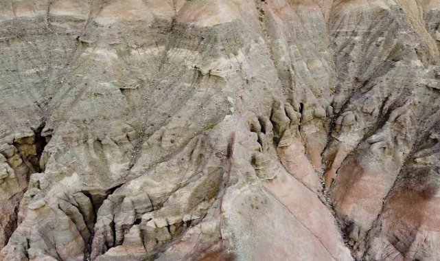Doğal süreçlerin etkisiyle şekillenen alan dron kamerasıyla havadan görüntülendi. Ortaya çıkan manzara, bölgenin doğal güzellikleri arasında yerini alırken, çevrede yaşayan vatandaşların da ilgisini çekiyor. Doğanın yıllar içinde şekillendirdiği bu oluşumlar, fotoğraf ve doğa meraklıları için de dikkat çekici bir görüntü sunuyor.