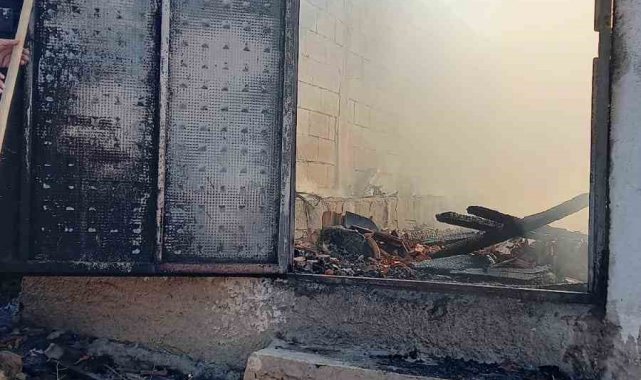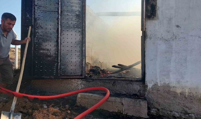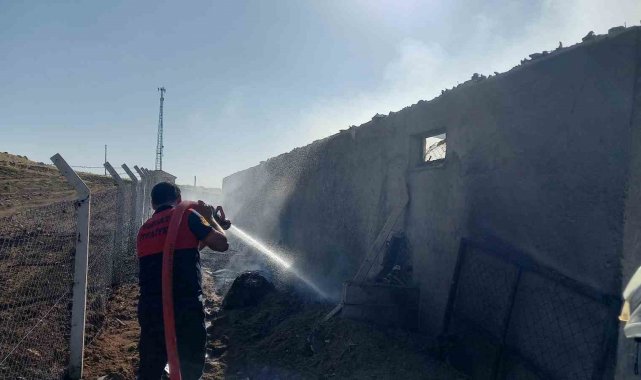 Yozgat'ta meydana gelen mandıra yangınında inşaat malzemeleri kullanılamaz hale geldi.
