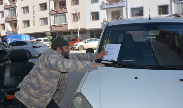 Yozgat'ın Sorgun ilçesinde engelli araçlara özel olarak ayrılan park yerlerini işgal eden sürücülerin araçlarının üzerine farkındalık oluşturmak için bir grup engelli, "Biz engelliler sizlere engel değiliz, sizler de bizlere engel olmayın" yazısı astı.