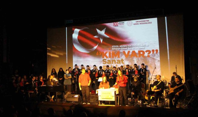 Ünlü sanatçı Yücel Arzen Hacıoğulları, Amasya'da öğrencilerle birlikte sahne aldı.