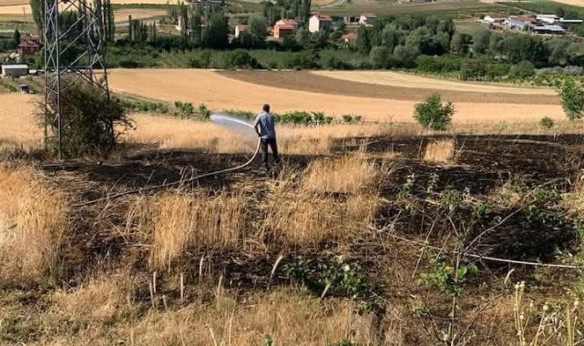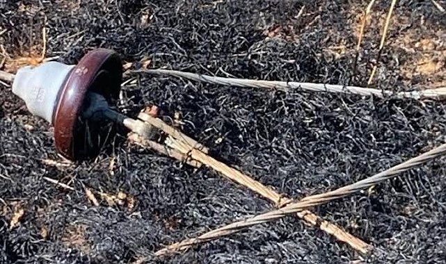 Yüksek gerilim hattı koptu, buğday tarlası alev aldı