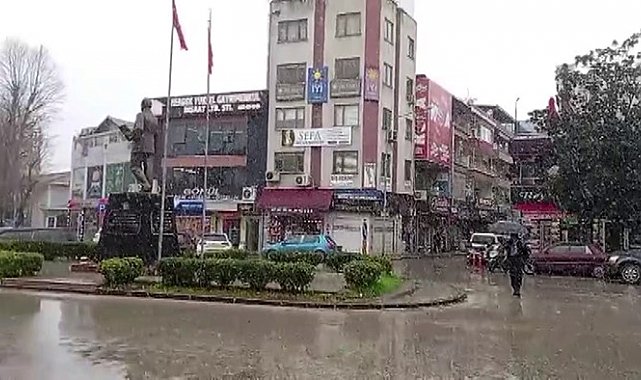 Meteoroloji Genel Müdürlüğü'nün uyarılarının ardından sabah saatlerinde etkili olan sağanak ve fırtına yüksek kesimlerde yerini kar yağışına bıraktı. Sakarya'nın bazı bölgeleri yağışla birlikte beyaza büründü. Hendek ilçesinin yüksek kesimlerindeki kar kalınlığı yaklaşık 20 santimetreye kadar ulaşırken ilçe merkezinde de lapa lapa yağmaya başladı.