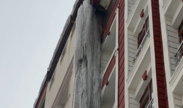 Hakkari'nin Yüksekova ilçesinde etkili olan dondurucu soğuklar nedeniyle adeta buz devri yaşanırken, araçlar brandayla korunurken çatılarda ise dev sarkıtlar oluştu.
