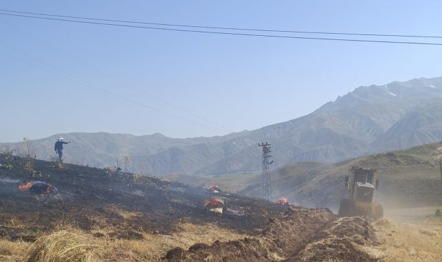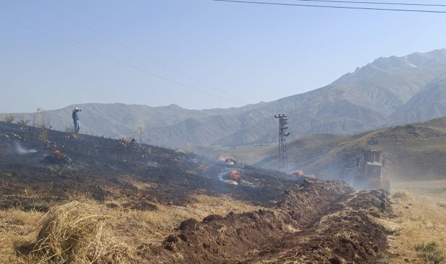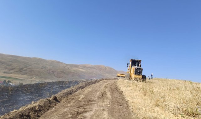 Hakkari'nin Yüksekova ilçesinde çıkan anız yangını, kepçe ile müdahale edilerek büyümeden kontrol altına aldı.