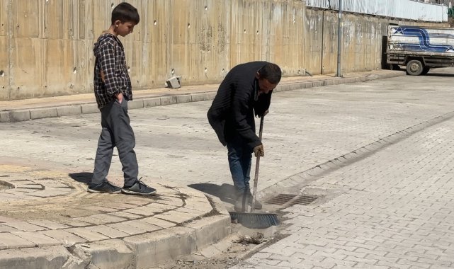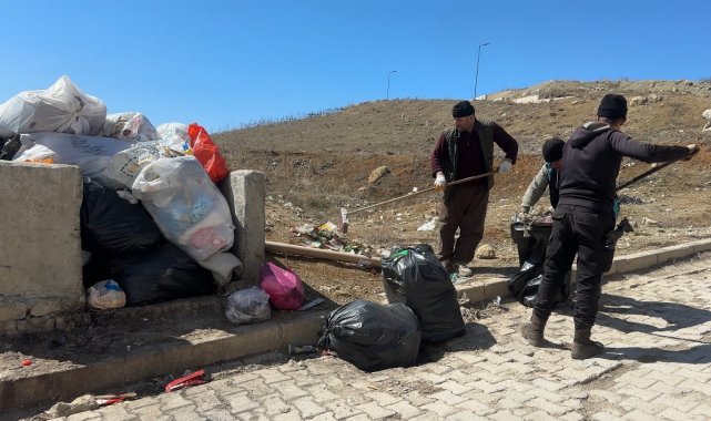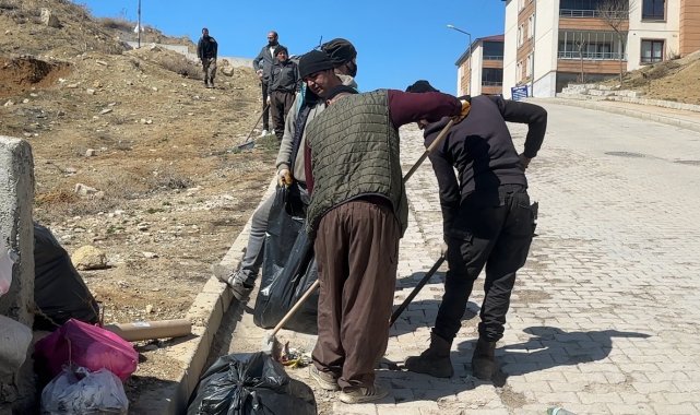Hakkari'nin Yüksekova ilçesinde bir araya gelen 10 kişilik mahalle sakini, havanın sıcak olmasını fırsat bilerek mıntıka temizliği yaptı.