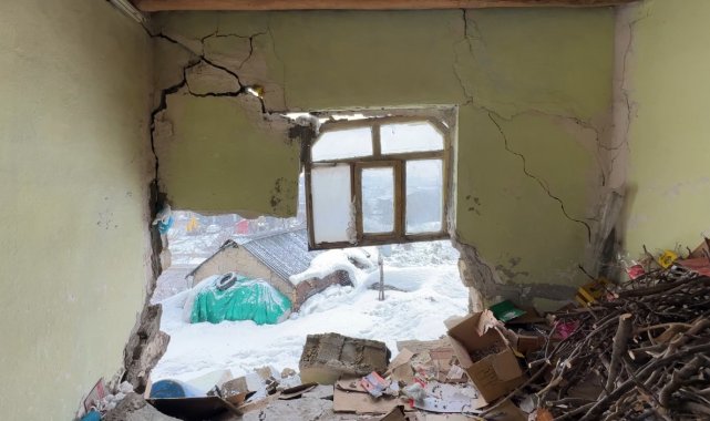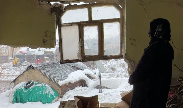 Yoğun kar yağışının etkili olduğu Hakkari'nin Yüksekova ilçesinde bir evin duvarı çöktü. Uykusunda yakalandığı felaketi deprem zannederek büyük korku yaşayan Pirüze Bala, kış ortasında evsiz kaldı.
