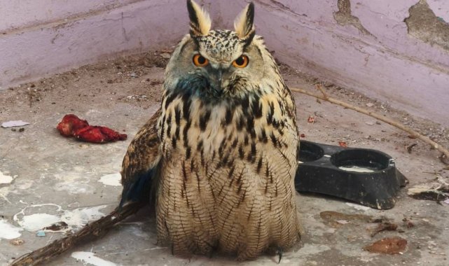 Yüksekova'da boynuzlu baykuş tedavi altına alındı