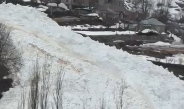 Hakkari'nin Yüksekova ilçesine bağlı Yeşiltaş köyünde yerleşim yerlerine yakın bir noktaya düşen çığ, korkuya neden oldu.