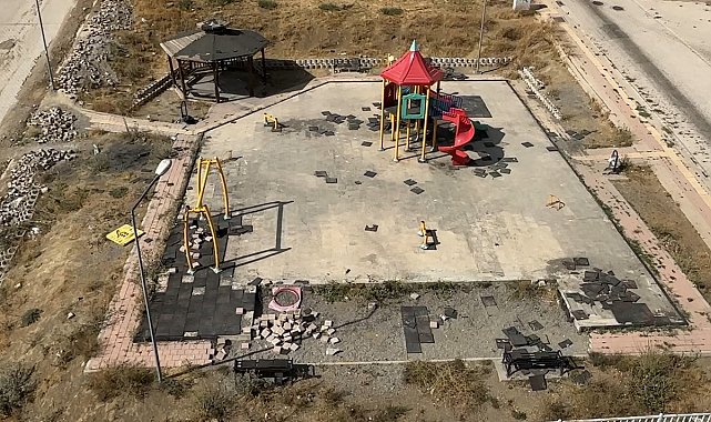 Esenyurt Mahallesi'nde bir çocuk parkına kimliği belirsiz kişi veya kişilerce büyük zarar verildi. Çocukların oynadığı parktaki malzemeler kırılırken, ailelerin dinlenmesi için yapılan çardağın üst kısmı da tamamen tahrip edildi.