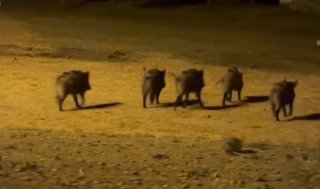 Zaman zaman ilçe merkezi ve köylerde görülen yaban domuzları, akşam saatlerinde köy içinde gezerken bir vatandaş tarafından cep telefonu kamerasıyla kaydedildi. Domuz sürüsünü köyden geçerken fark eden Candan Demir, o anları ölümsüzleştirmek için hemen telefonuna sarıldı. Demir, sürünün muhtemelen açlık nedeniyle bu kadar yerleşim yerine yaklaştığını belirtti. Gözlemlerini aktaran Candan Demir, "Köyden geçerken domuz sürüsünü gördük. Biz de o anları hemen kayıt altına aldık. Biraz bekledikten sonra domuz sürüsü gece karanlığa karışarak gözden kayboldu" dedi.