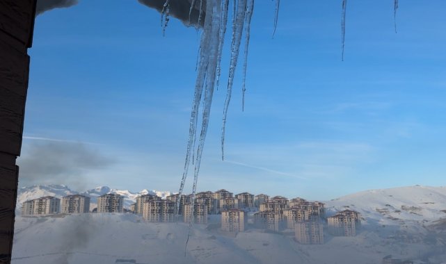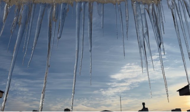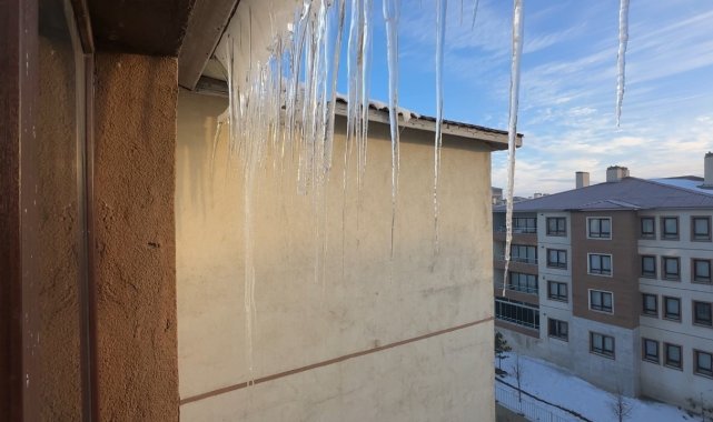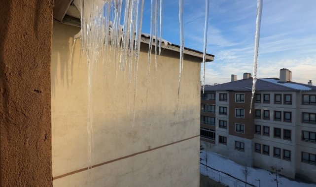 Hakkari'nin Yüksekova ilçesinde etkili olan dondurucu soğuklar günlük yaşamı olumsuz etkilerken, binaların çatılarında ise dev buz sarkıtları oluşturdu.