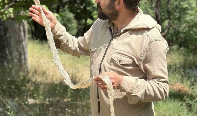 Hakkari'nin Yüksekova ilçesinde, doğa gözlemcisi öğretmen Ümit Bartın, Türkiye'nin en zehirli yılan türlerinden birine ait olduğu değerlendirilen bir yılan derisi buldu.