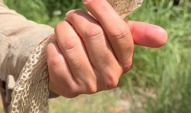 Her hafta olduğu gibi Hakkari ve ilçelerinin tanıtımına katkı sağlayan öğretmen Ümit Bartın, bu hafta Irak sınırında bulunan Dağlıca köyünü gezdi. Bölgenin zorlu ve eşsiz doğasında yürüyüş yaptığı sırada dikkat çekici bir bulguya imza attı. Doğaya olan tutkusu ve gözlem yeteneğiyle tanınan Bartın, tamamen bozulmamış, Türkiye'nin en zehirli yılan türlerinden birine ait olduğu tahmin edilen bir yılan derisiyle karşılaştı. Bartın'ın bu keşfi, bölgedeki yaban hayatının çeşitliliğine dikkat çekti.