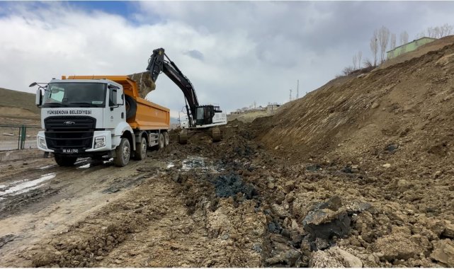 Yüksekova'da heyelan nedeniyle tek şeridi 19 gündür kapalı olan yol temizleniyor