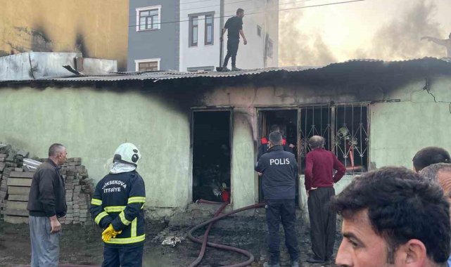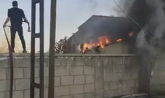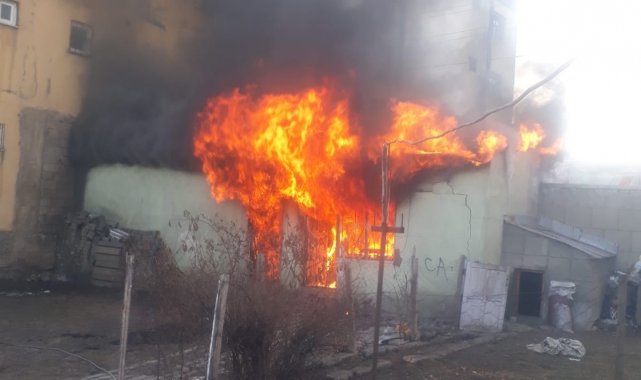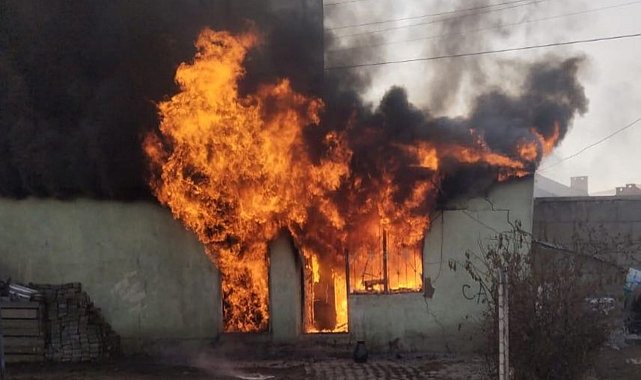 Tandır evine ve odunluğa ait olan, henüz nedeni bilinmeyen yangın hızla büyüdü ve alevler her yeri sardı.