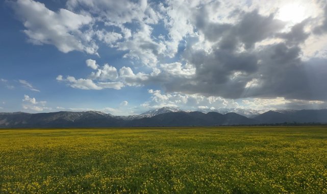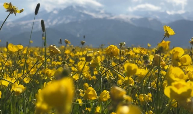 Yüksekova ilçesinde 4 bin 130 metre yüksekliğindeki Cilo Dağı'nın karlarıyla birleşen sarı çiçekler, göz alıcı manzaralar sunuyor. Türkiye'nin en sert kışlarının yaşandığı Yüksekova'da, baharın gelmesiyle birlikte ova rengarenk çiçeklerle adeta bir şölen alanına dönüşüyor. Çeşitli renklere sahip birbirinden güzel çiçekler eşsiz bir güzellik sunarken, fotoğrafçılar bu manzarayı ölümsüzleştirmek için büyük ilgi gösteriyor.