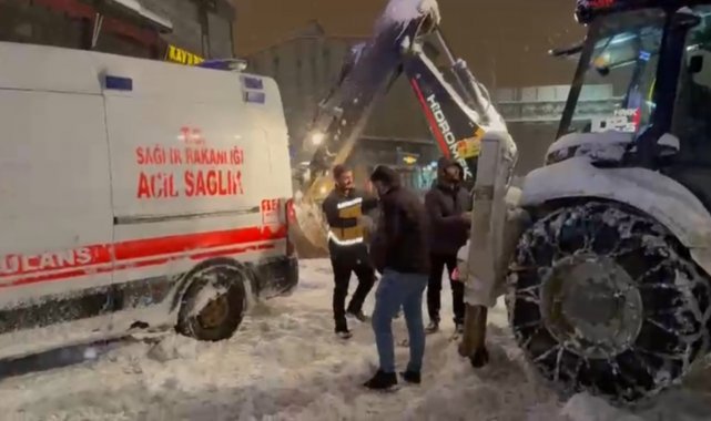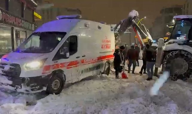 İlçe merkezindeki Cengiz Topel Caddesi üzerinde seyir halindeyken yoğun kar ve buzlanma nedeniyle kontrolden çıkan bir ambulans kara saplandı. Kendi imkanlarıyla kurtulamayan sağlık ekipleri, durumu yetkililere bildirerek yardım istedi. İhbar üzerine bölgeye sevk edilen İl Özel İdaresine bağlı karla mücadele ekipleri, iş makinesi yardımıyla yürüttükleri çalışma sonucu ambulansı saplandığı yerden çıkardı.