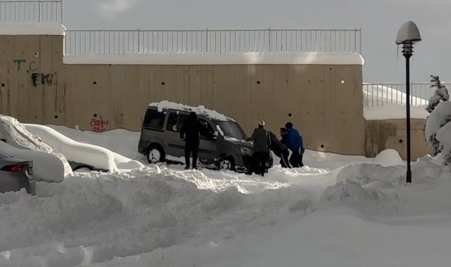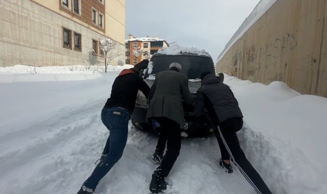 İlçede üç gün önce başlayan ve aralıklarla etkisini sürdüren kar yağışı, günlük yaşamı olumsuz etkiliyor. Kar kalınlığının ilçe merkezinde 40 santimetreye, yüksek kesimlerde ise yarım metreye ulaştığı bölgede, ulaşımda aksamalar yaşanıyor. Pizok konutları mevkiindeki ara sokakta seyir halindeki otomobil, kar ve buzlanma nedeniyle yolda kaldı. Sürücü Eren Aybar'ın kendi imkanlarıyla aracı çıkarma çabaları sonuç vermeyince, çevredeki vatandaşlar yardıma koştu. Vatandaşların yoğun uğraşları sonucu saplandığı yerden çıkarılan araç, yoluna devam etti.