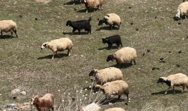 Yüksekova'da küçükbaş hayvanlar meraya çıktı
