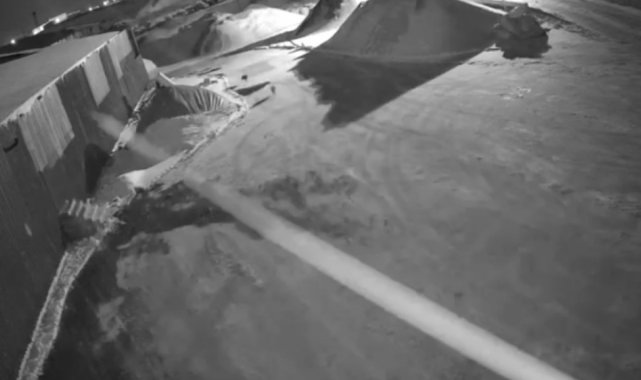 Hakkari'nin Yüksekova ilçesinde Esendere yolu üzerinde bulunan maden tesisine giren iki kurt güvenlik kamerasına yansıdı.