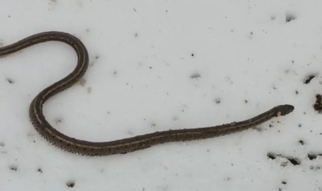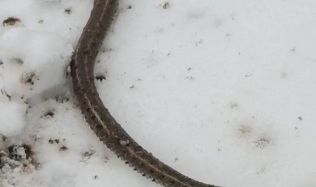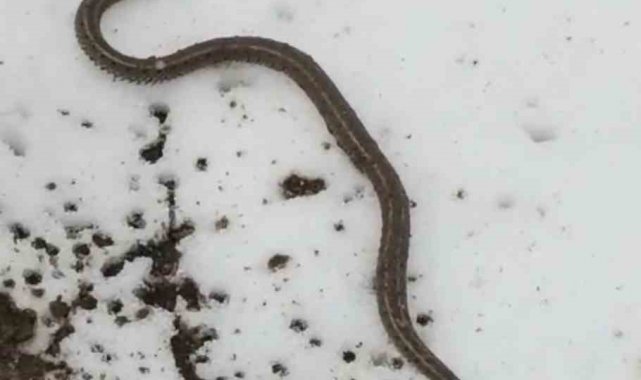 Kar üzerinde bir süre gezinen yılan, daha sonra gözden kayboldu.