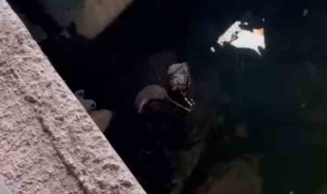 Hakkari'nin Yüksekova ilçe merkezinden geçen derede, yiyecek arayışında olan bir su samuru görüntülendi.