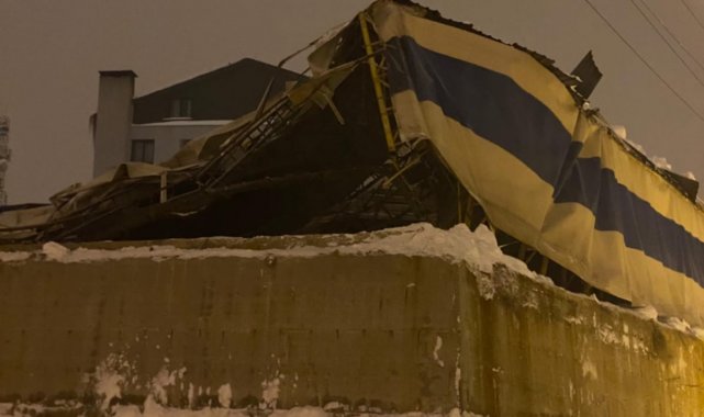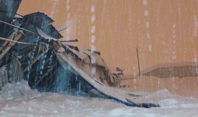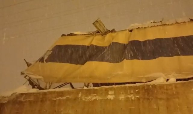 Hakkari'nin Yüksekova ilçesinde etkili olan yoğun kar yağışı hayatı olumsuz etkilerken, bir halı sahanın çatısı biriken karın ağırlığına dayanamayarak çöktü.