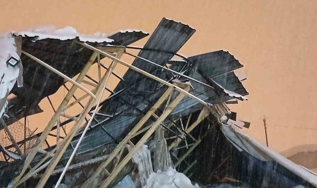 Yüksekova'da yoğun kar nedeniyle halı sahanın çatısı çöktü