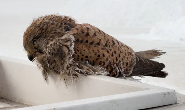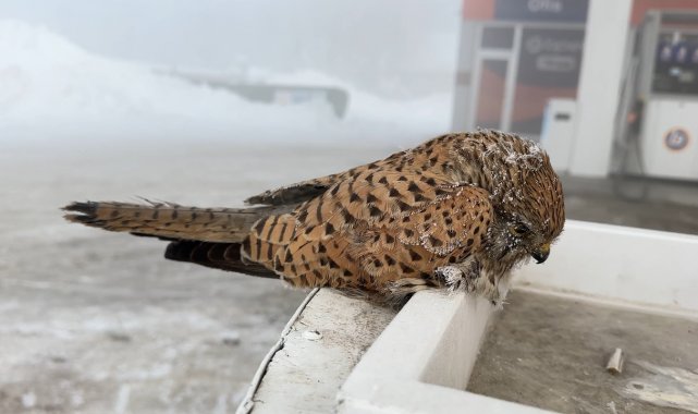 Yüksekova'da geçtiğimiz günlerde etkili olan yoğun kar yağışı, yerini dondurucu soğuklara bıraktı. Termometrelerin eksi 25'i gösterdiği ilçede, Şemdinli yolu üzerinde bulunan bir akaryakıt istasyonunda ilginç ve bir o kadar da üzücü bir olay yaşandı. Sabah saatlerinde aracına yakıt almak için akaryakıt istasyonuna gelen Abdullah Özer, yakıt pompasının üzerinde hareketsiz duran bir kuş fark etti. Kuşun yaşadığını düşünerek yanına yaklaşan Özer, kuşa dokunduğunda tamamen donduğunu gördü. Gördüğü manzara karşısında hayretler içerisinde kalan Özer, "Günlerdir süren kar yağışının ardından şiddetli soğuklar başladı. Yakıt aldığım sırada pompanın üzerinde bir kuş gördüm. Belki yaşıyordur diye müdahale etmek istedim ancak maalesef kuş adeta taşa dönmüştü, tamamen donmuştu. Kuşların bile donarak can verdiği bu soğuklarda insanın dışarıda dayanması çok zor. Allah herkesin yardımcısı olsun" dedi.