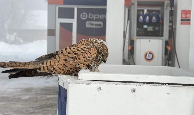 Hakkari'nin Yüksekova ilçesinde yaşayan Abdullah Özer, aracına yakıt aldığı sırada yakıt pompasının üzerinde donmuş bir kuşla karşılaşmasıyla hayretler içerisinde kaldı.