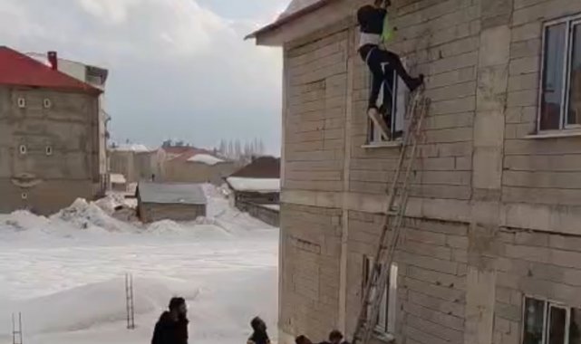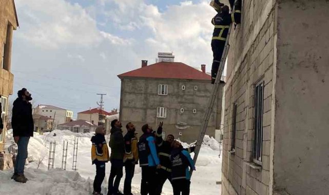 Edinilen bilgiye göre, Cumhuriyet Mahallesi'nde akşam saatlerinde 2 katlı binasının çatısında biriken karları temizlemek isteyen M.S.Ö., dengesini kaybederek kaydı. Tedbir amaçlı beline bağladığı halatın takılmasıyla havada asılı kalan vatandaşı görenler, durumu yetkililere bildirdi. İhbar üzerine bölgeye Yüksekova Belediyesi İtfaiye Müdürlüğü, 112 Acil Sağlık, UMKE ve polis ekipleri sevk edildi. İtfaiye ekiplerinin merdivenli araçla gerçekleştirdiği titiz operasyonla mahsur kaldığı yerden indirilen M.S.Ö.'nün yapılan kontrolde sağlık durumunun iyi olduğu belirlendi.