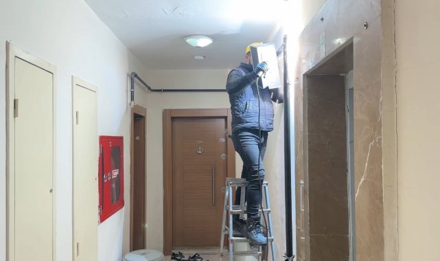 Hakkari'nin Yüksekova ilçesinde, yürütülen doğalgaz çalışmaları çerçevesinde evlerde iç tesisatlar döşeniyor.