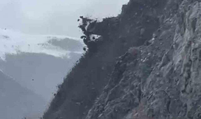 Yüksekova-Van kara yolunda sağanak yağış sonrası meydana gelen heyelan büyük korkuya neden olurken, toprak yığınlarının yola indiği anlar kayıt altına alındı.