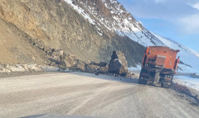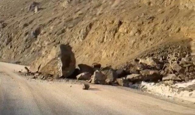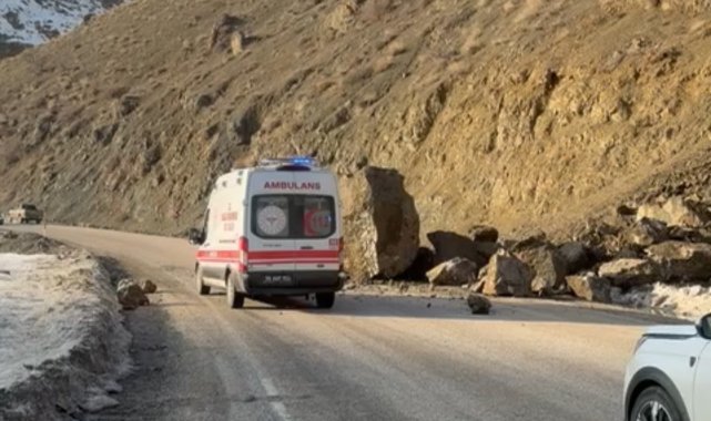 Yüksekova-Van karayolunda dev kaya parçaları yola düştü. Sürücüler facianın eşiğinden döndü.